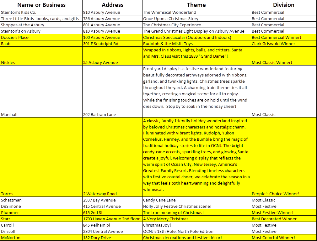 The 2025 Holiday House Decorating Contest in Ocean City included 16 entries, and winners were announced on Monday, Dec 15.