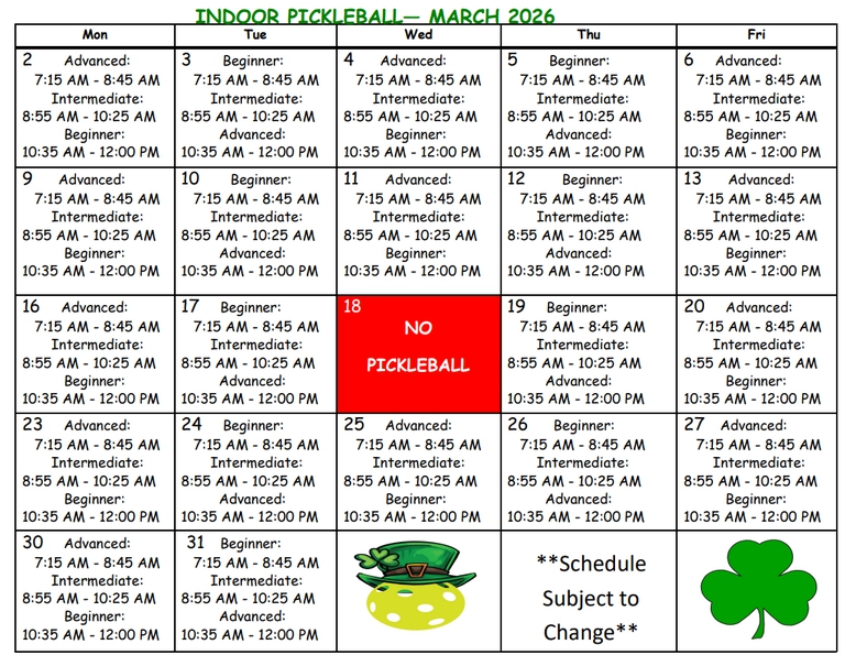 Trouble Viewing Schedule? Click Here: Pickleball March Schedule 2026.pdf