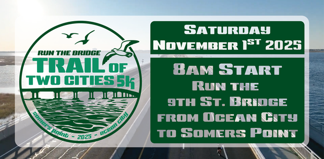 This popular 5K race offers spectacular views over the length of a point-to-point course from Ocean City to Somers Point. The route travels the length of the Route 52 causeway in the lanes usually reserved for cars.
