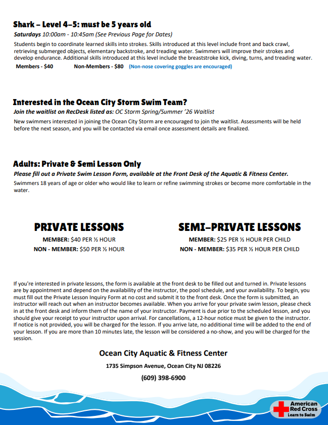 In Person: Ocean City Aquatic & Fitness Center (1735 Simpson Avenue)