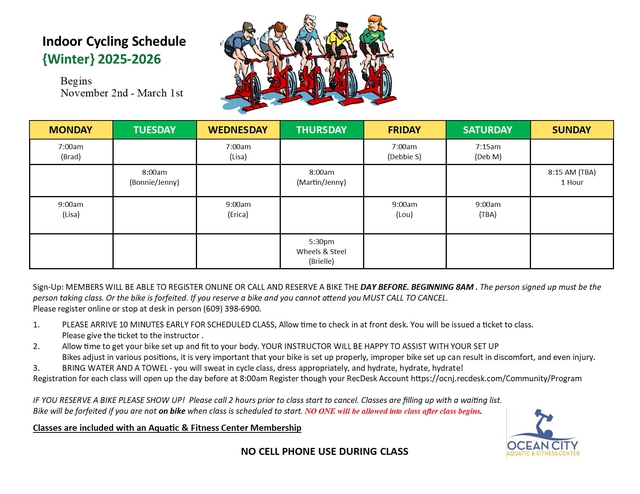 Indoor Cycling Classes are now included with your Aquatic & Fitness Center Membership