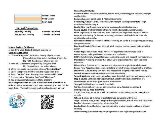 Program cancellation due to inclement weather will be announced on Channel 2 or call (609) 525-9304. Please make all checks for programs or special events payable to: “City of Ocean City.” Registration for activities will be taken online through the online registration platform.