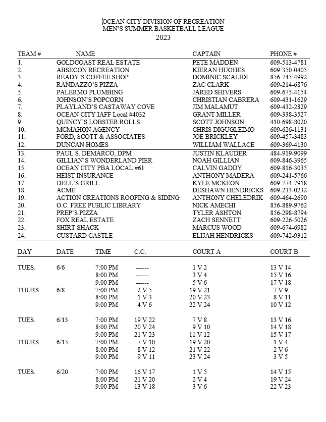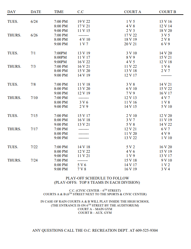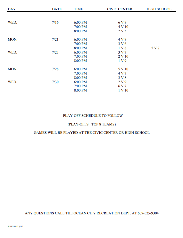 LOCATION: 6th Street Basketball Courts, Sports & Civic Center, and/or Ocean City Intermediate School
