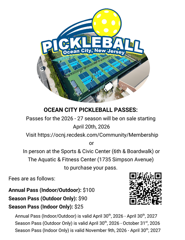 Online registration will be through the RecDesk system (ocnj.recdesk.com), and anybody can create an account there to manage program and event registrations, as well as Aquatic and Fitness Center memberships. In-person registration will be available at the Ocean City Community Center (1735 Simpson Avenue) and the Ocean City Civic Center (Sixth Street and Boardwalk).
